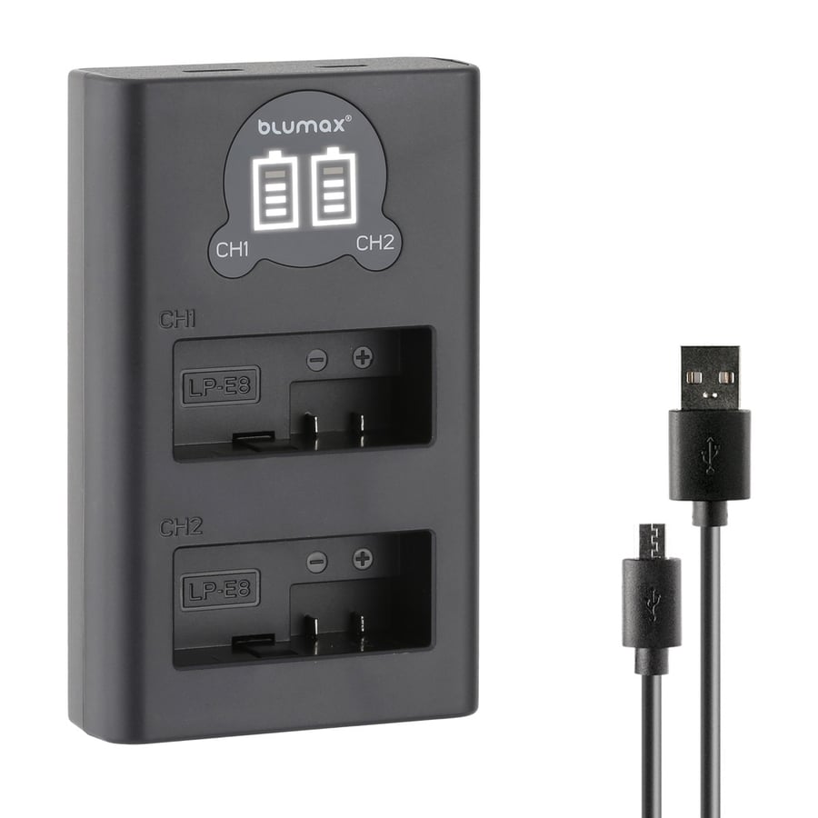 Зарядно за 2 батерии Canon LP-E8 с LCD дисплей